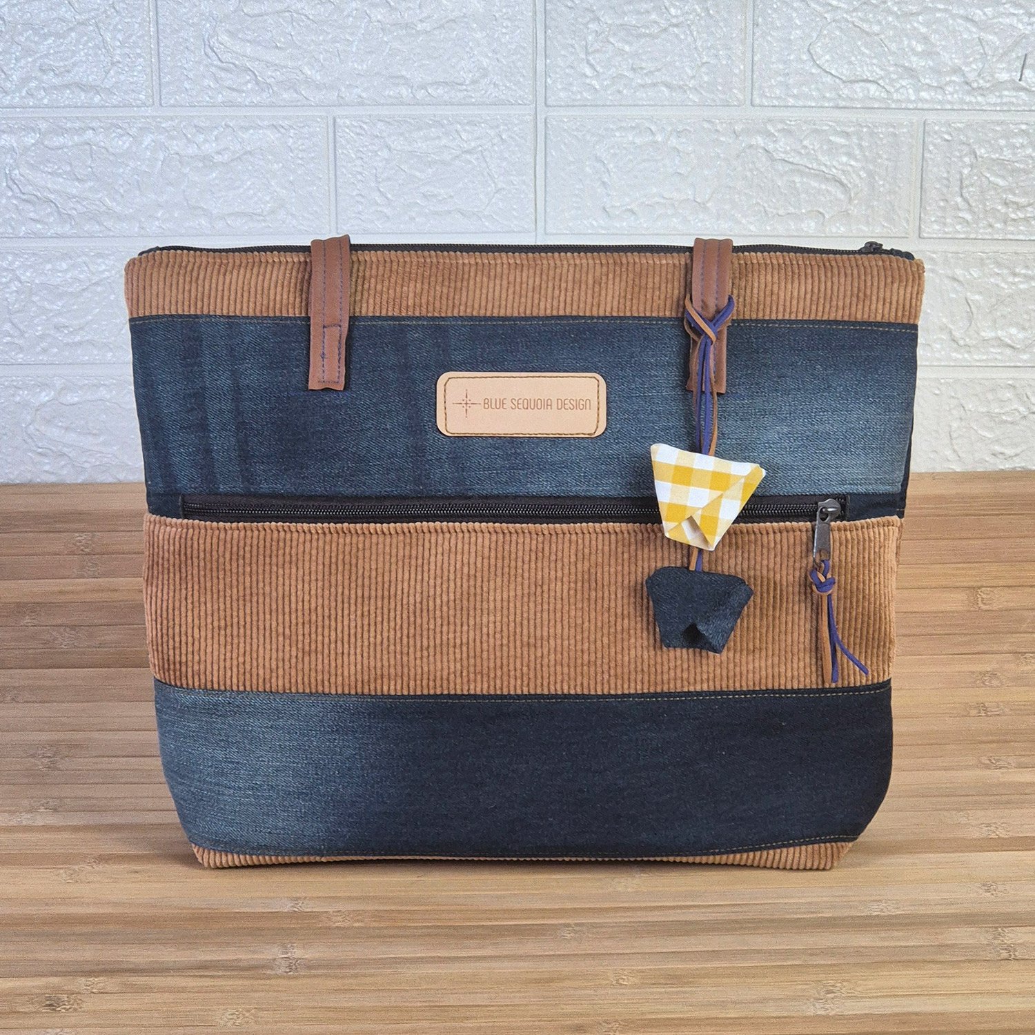 Bolso shopper en pana cordelé efecto lavado y denim reciclado. Pieza única.