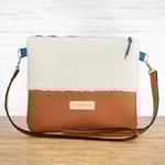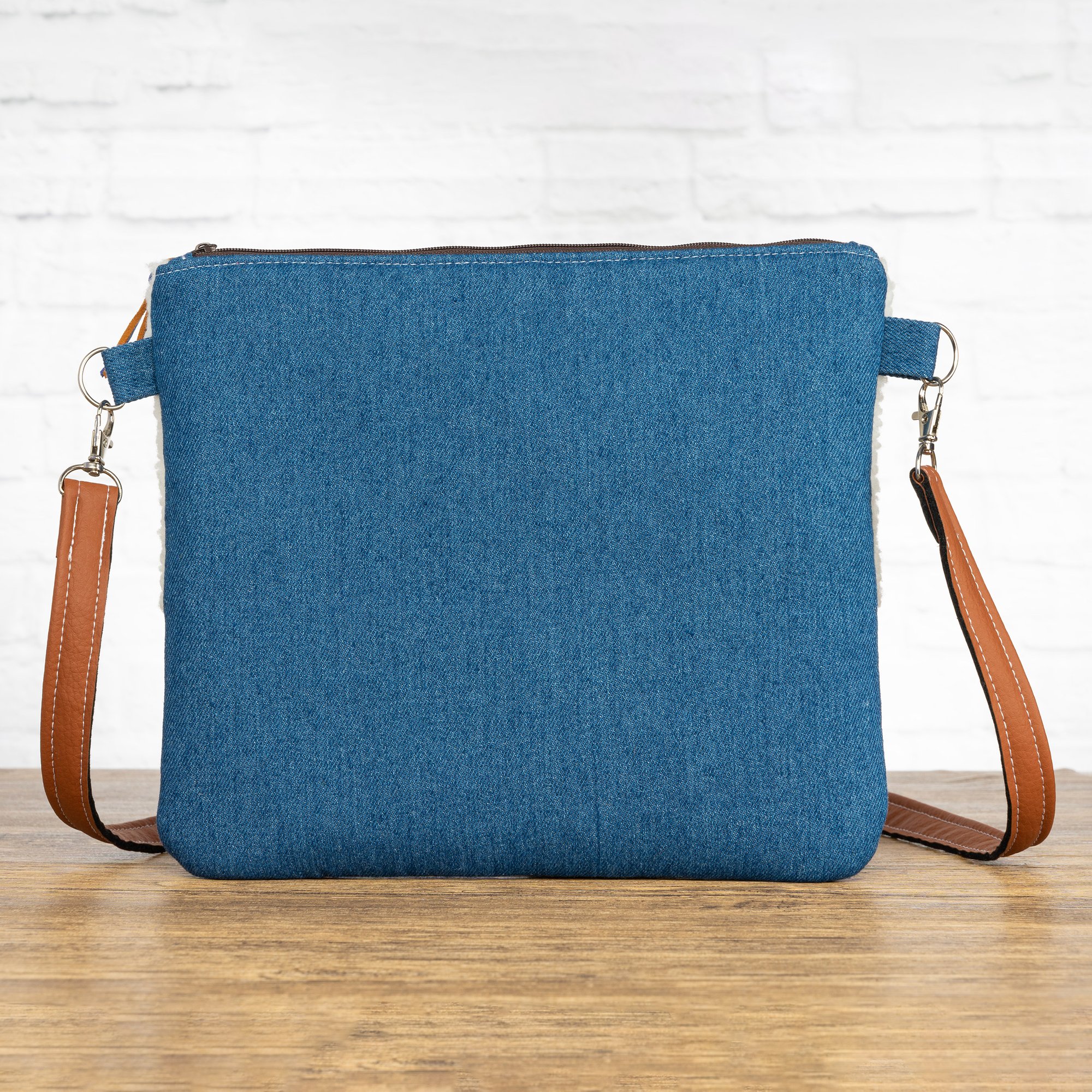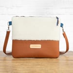 Un bolso ligero y muy cálido, pensado para acompañarte en otoño e invierno. La combinación de tejido teddy en color crudo, denim azul y polipiel de tapicería marrón lo convierte en una pieza cómoda, suave al tacto y fácil de integrar en el día a día.