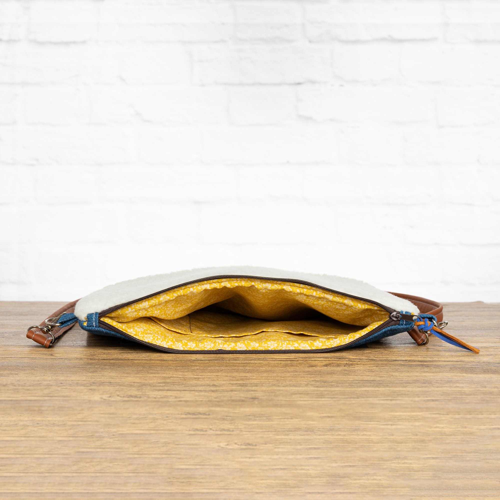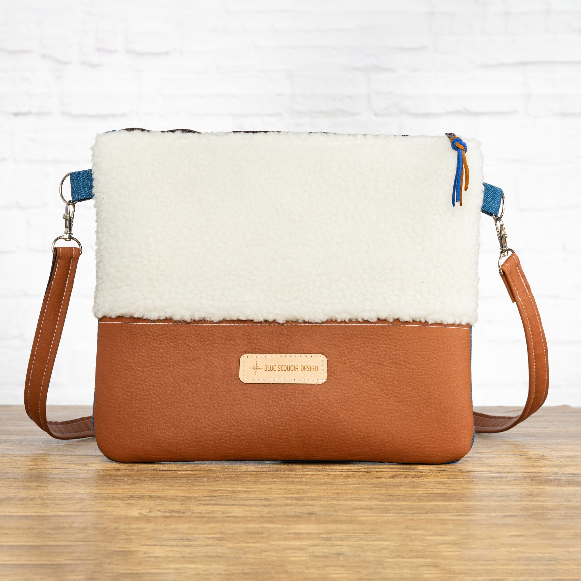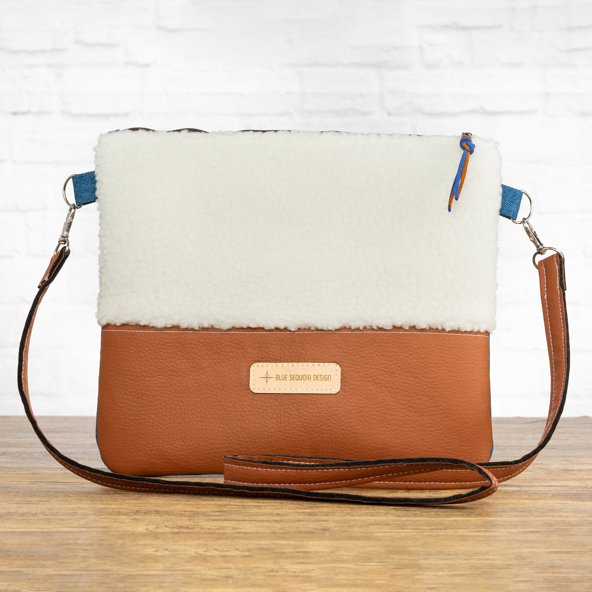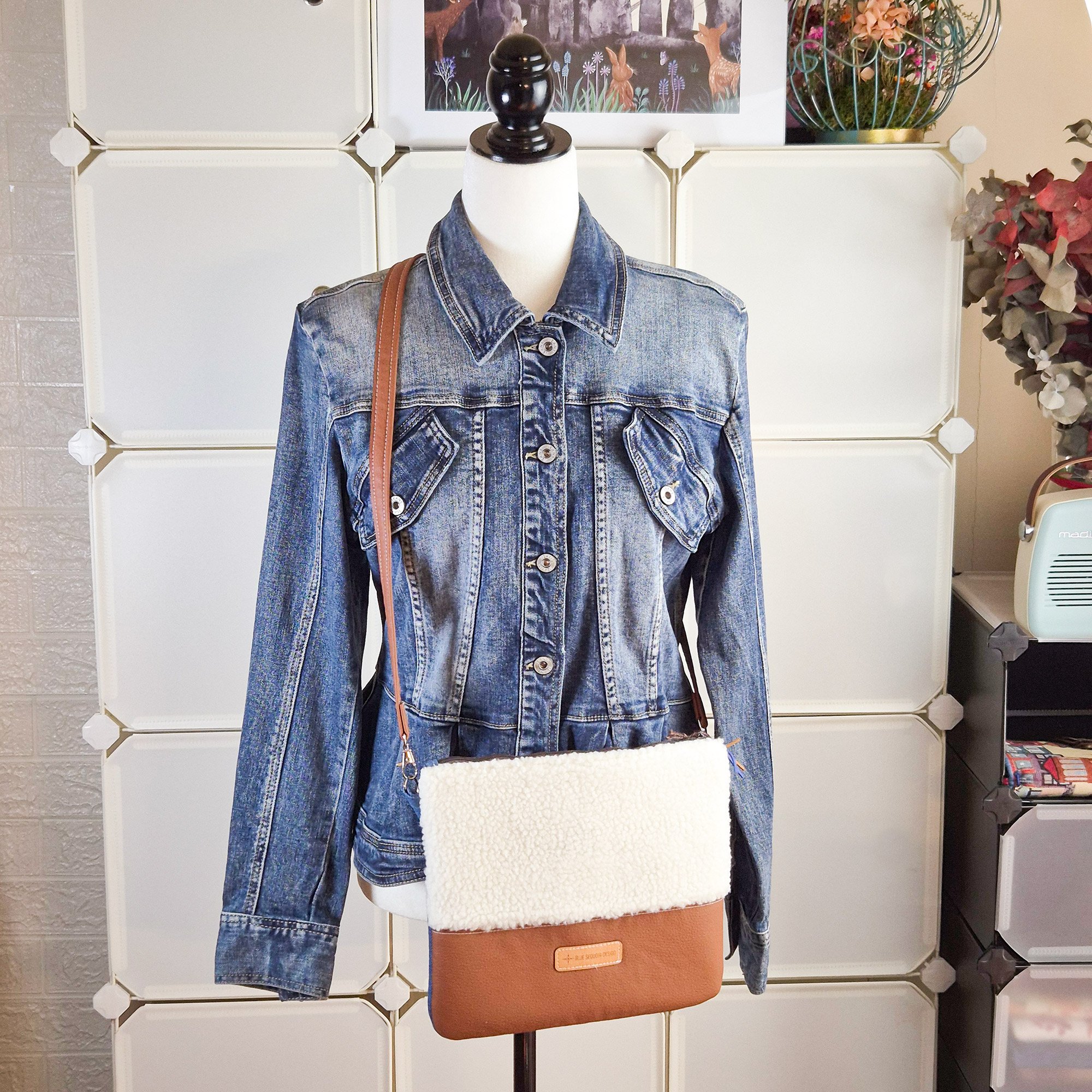 Bolso bandolera en borreguito, denim y polipiel. Pieza única.